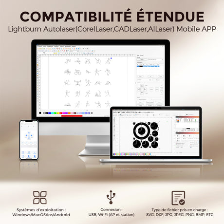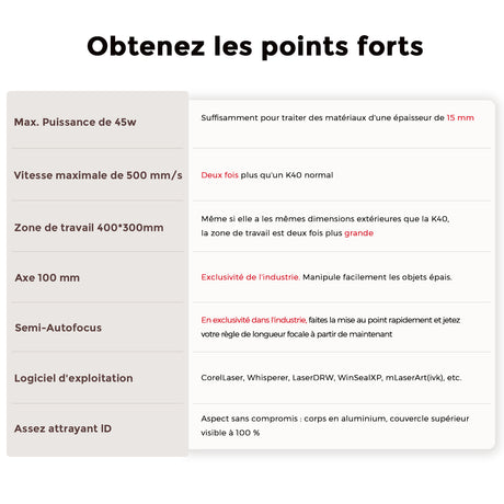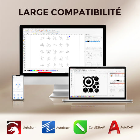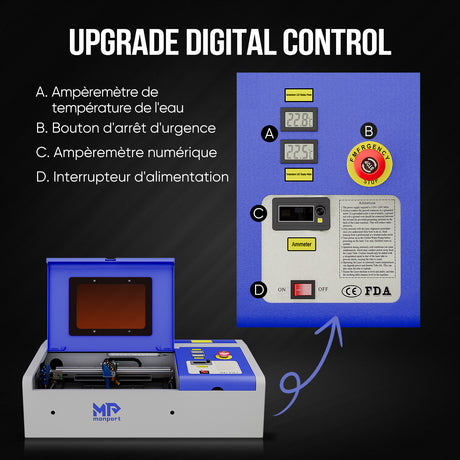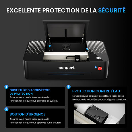 Monport 40W Pro Graveur & découpeur laser CO2 Lightburn (12" X 8") avec assistance d'air