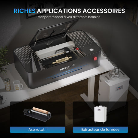 MONPORT ONYX Graveur laser CO2 de bureau 55W avec Mise au Point Automatique
