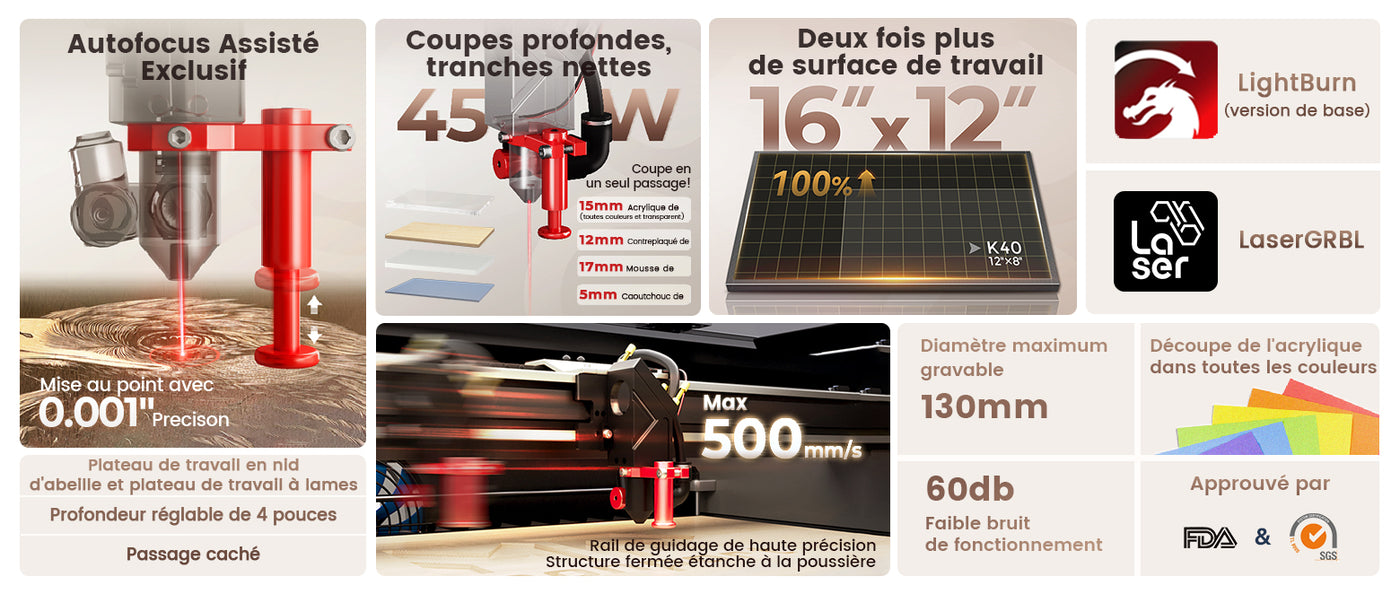 | Puissance du laser | 45W | 45W | 65W | 65W |
