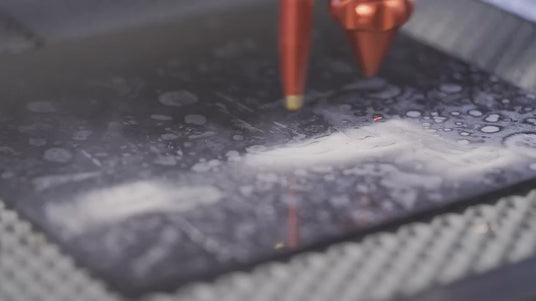 Un système Air Assist intégré dirige un flux d'air comprimé à travers les buses de la tête laser pour éliminer les contaminants, la chaleur et les gaz inflammables de la surface de gravure et du trajet du faisceau laser, permettant une gravure plus précise.