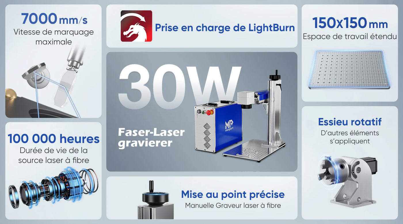 Monport GQ 30W Graveur laser à fibre (5.9" x 5.9") & machine de marquage