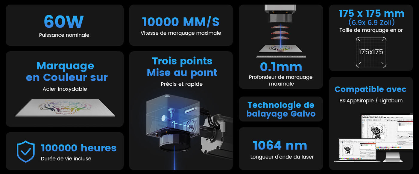 | Logiciel compatible | BslAppSimple, Lightburn | BslAppSimple, Lightburn | BslAppSimple, Lightburn | BslAppSimple, Lightburn |