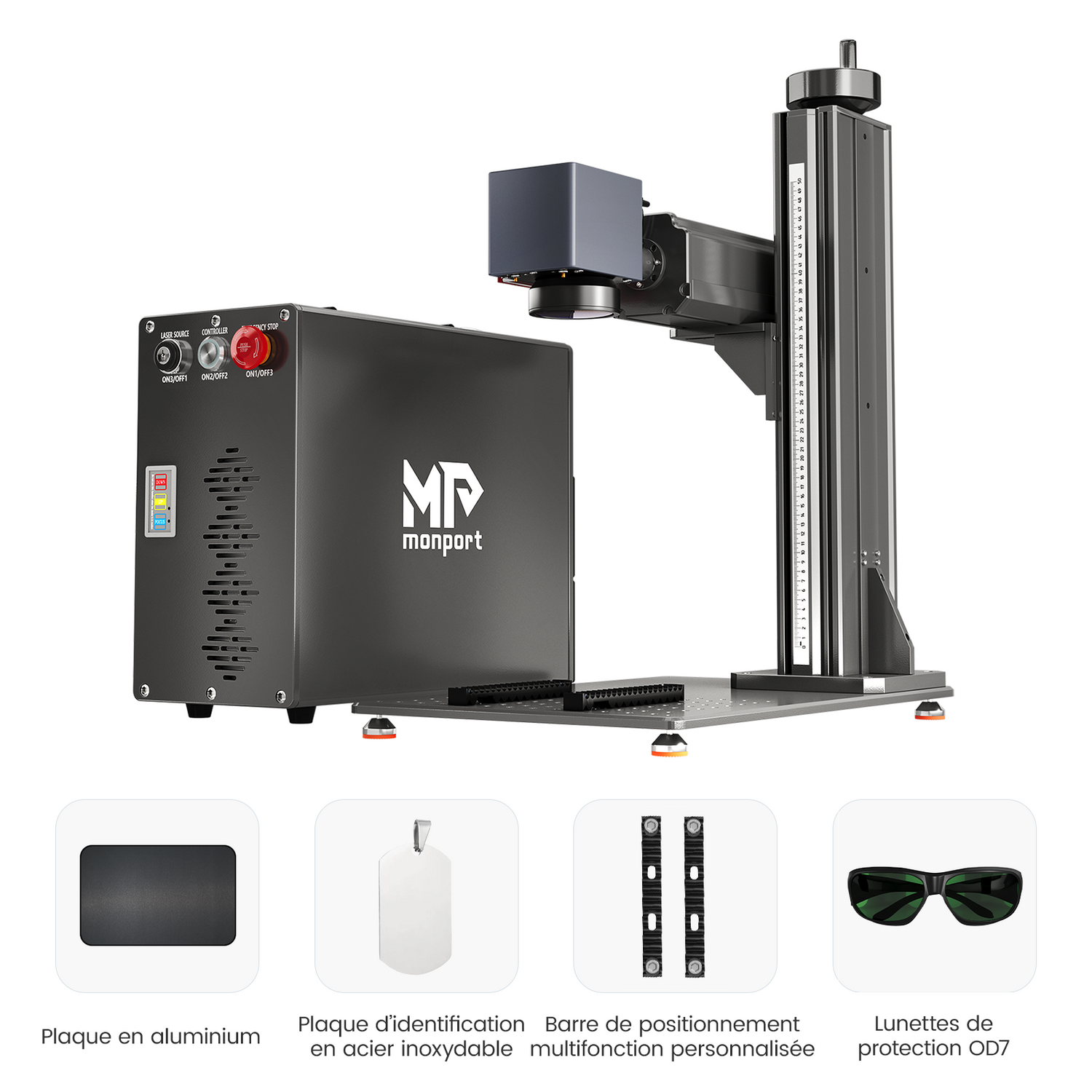 Monport GT 100W Graveur et machine de marquage couleur laser à fibre MOPA séparé avec autofocus – Appareil
