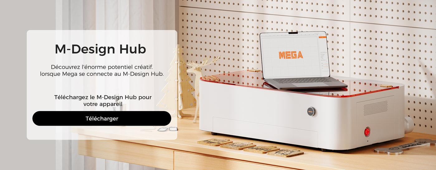 | Emballage | Laser Co2 70W *1 Acrylique transparent 3mm *2 Panneaux de tilleul 3mm *5 Papier kraft *10 Tuyau et pince pour canǎle à air *1 1L d'antigel *1 Adaptateur pour gaine d'air *1 Câble d'alimentation *1 Câble USB TyP C *1 Cible optique *1 Set de tournevis *1 Entonnoir *1 Jeu de clameaux de fixation *1 Jeu de clés hexagonales *1 Rubans tissés *2 Cartes de visite *5 Manuel d'utilisation Mega *1 |