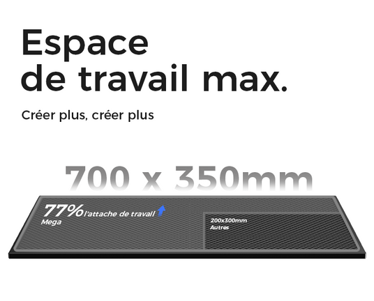 Dites adieu aux limites de taille ! La vaste zone de travail de 700 x 350 mm permet de traiter des projets de grande envergure jusqu'à la microgravure en série en une seule opération, ce qui augmente considérablement votre productivité !