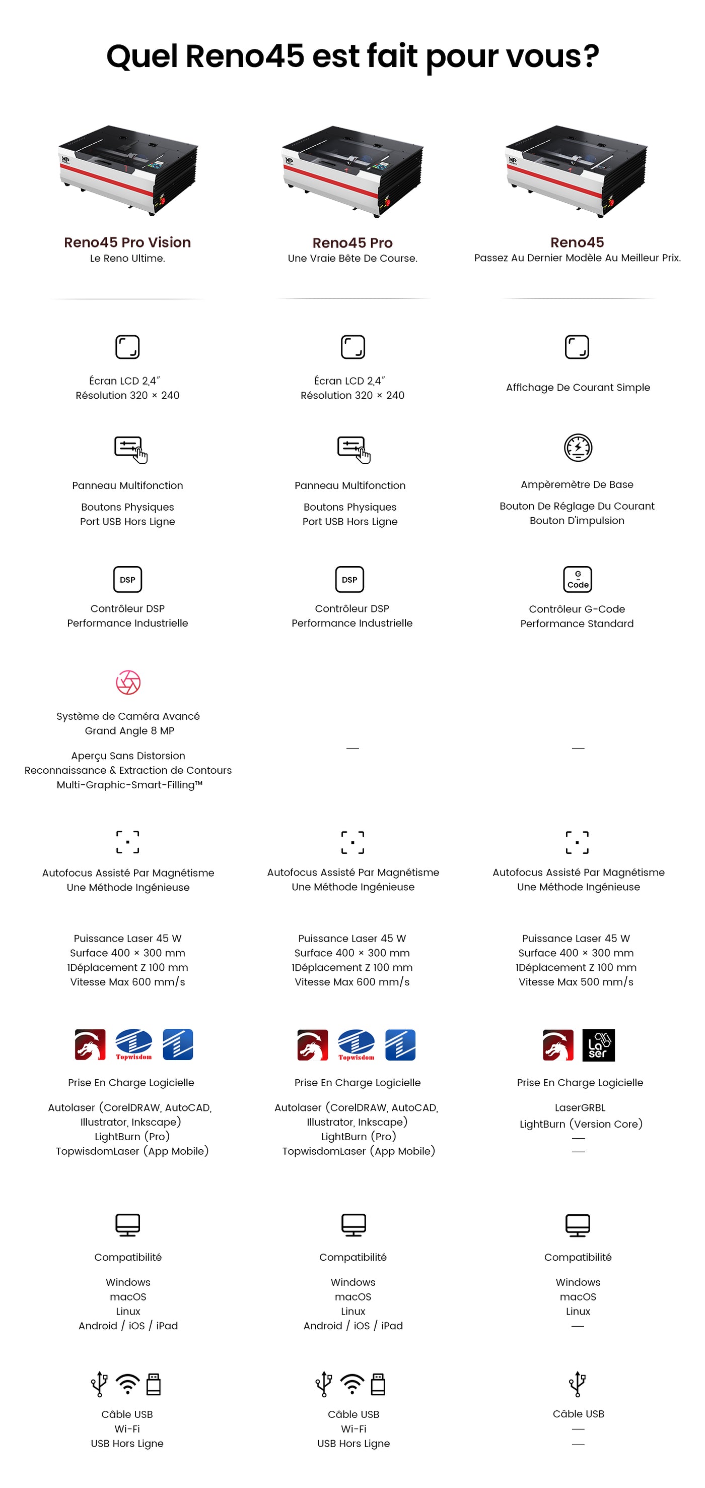 Logiciels compatibles : LightBurn, Autolaser, TopwisdomLaser
